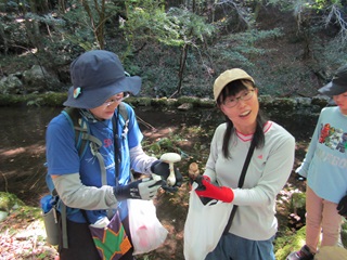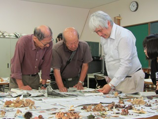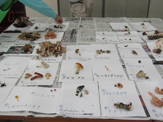 きのこに明るい先生方とともに園内の散策路沿いできのこ採集に挑戦していただきました。適度な雨量と冷え込みが、きのこの発生を促したのではないかと先生方がおっしゃるとおり、たくさんのきのこが採取されました。