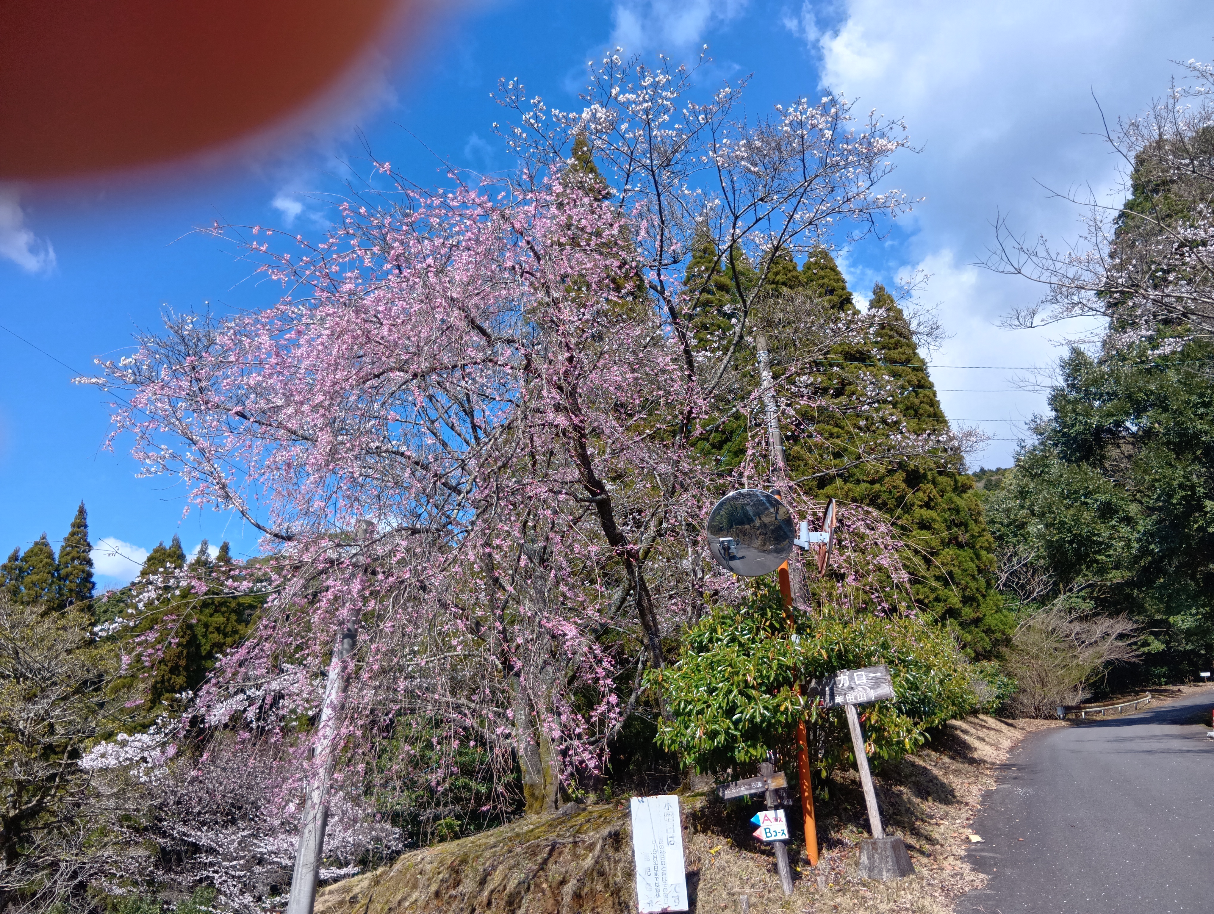 上から 長尾山線沿線、中央広場、テレビで放送された木、シダレザクラ