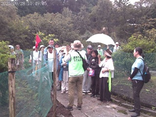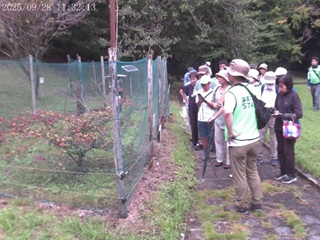 上り下りの続く散策コースで足への負担はありましたが、秋へと移ろいつつある 森の中はほどよく風がとおり、路傍の植物やきのこの話に耳を傾けながら2時間ほ どの心地良い散策を楽しまれました。